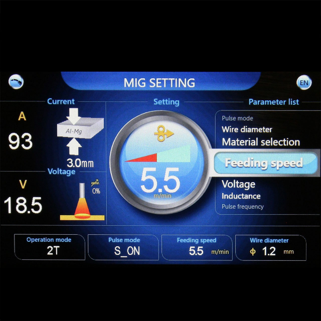 Biedt hulp in de SYNERGY-modus om lasparameters in te stellen op basis van de door de gebruiker gekozen materiaalsoort en -dikte en lasdraaddiameter. Kan enkele of dubbele pulsstroom gebruiken in MIG- of MAG-modus. Nauwkeurige bedieningsknoppen voor stroom, spanning, draadaanvoersnelheid en inductie. Draagbaar en verhoogde mobiliteit dankzij vier wielen en ruimte voor een gasfles van volledige grootte.